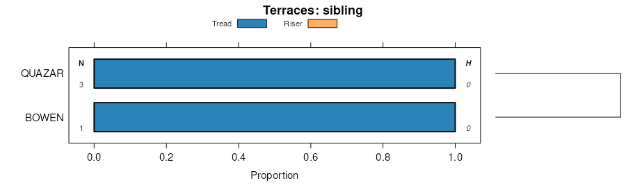 Geomorphic description summaries for the ANNELLA series and siblings. Series are sorted according to hierarchical clustering of proportions and relative hydrologic position within an idealized landform (e.g. top to bottom). Most soil series (SSURGO components) are associated with a hillslope position and one or more landform-specific positions: hills, mountain slopes, terraces, and/or flats. Proportions can be interpreted as an aggregate representation of geomorphic membership. The values printed to the left (number of component records) and right (Shannon entropy) of stacked bars can be used to judge the reliability of trends. Small Shannon entropy values suggest relatively consistent geomorphic association, while larger values suggest lack thereof. Source: SSURGO component records .