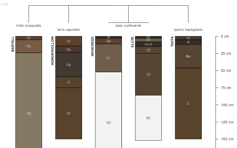 Siblings are those soil series that occur together in map units, in this case with the BARTELL series. Sketches are arranged according to their subgroup-level taxonomic structure. Source: SSURGO snapshot , parsed OSD records and snapshot of SC database .