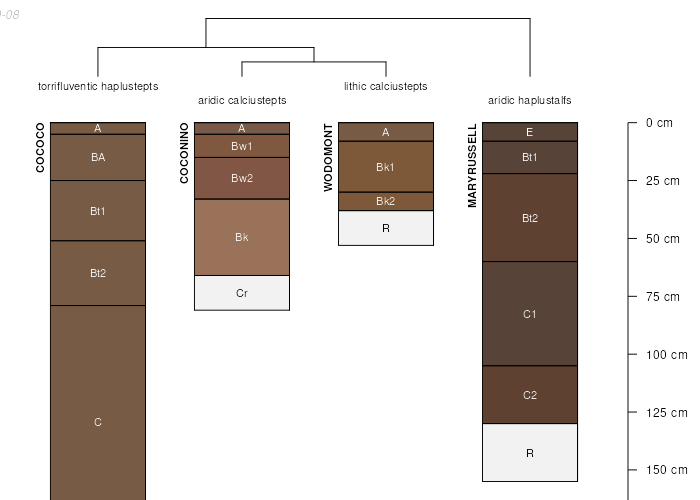 Siblings are those soil series that occur together in map units, in this case with the COCOCO series. Sketches are arranged according to their subgroup-level taxonomic structure. Source: SSURGO snapshot , parsed OSD records and snapshot of SC database .