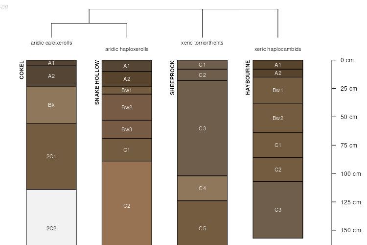 Siblings are those soil series that occur together in map units, in this case with the COKEL series. Sketches are arranged according to their subgroup-level taxonomic structure. Source: SSURGO snapshot , parsed OSD records and snapshot of SC database .