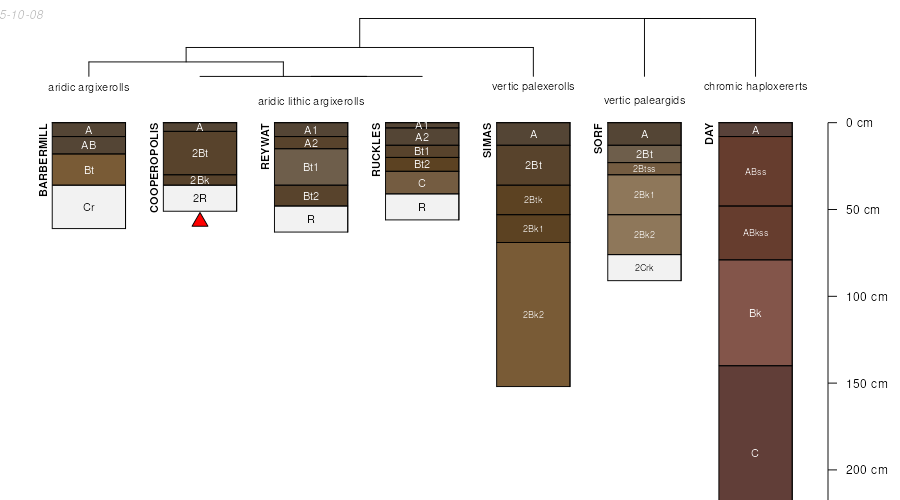 Siblings are those soil series that occur together in map units, in this case with the COOPEROPOLIS series. Sketches are arranged according to their subgroup-level taxonomic structure. Source: SSURGO snapshot , parsed OSD records and snapshot of SC database .
