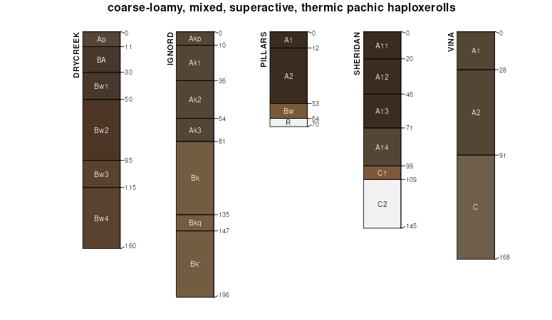 Siblings are those soil series that occur together in map units, in this case with the DRYCREEK series. Sketches are arranged according to their subgroup-level taxonomic structure. Source: SSURGO snapshot , parsed OSD records and snapshot of SC database .