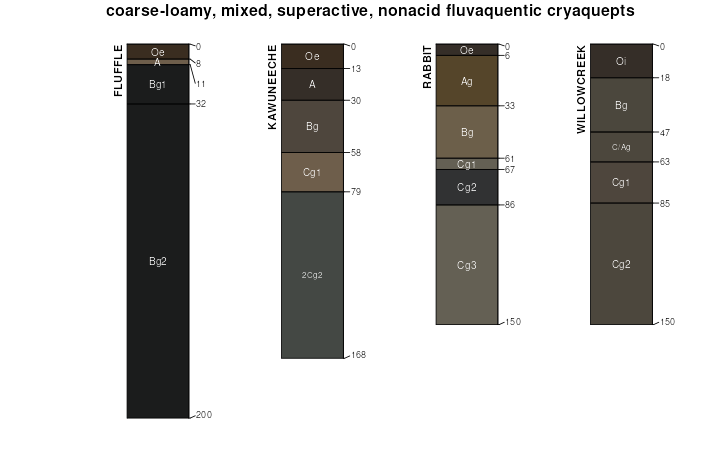 Siblings are those soil series that occur together in map units, in this case with the FLUFFLE series. Sketches are arranged according to their subgroup-level taxonomic structure. Source: SSURGO snapshot , parsed OSD records and snapshot of SC database .