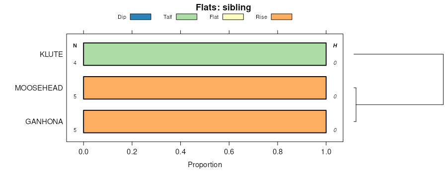 Geomorphic description summaries for the MACLAREN series and siblings. Series are sorted according to hierarchical clustering of proportions and relative hydrologic position within an idealized landform (e.g. top to bottom). Most soil series (SSURGO components) are associated with a hillslope position and one or more landform-specific positions: hills, mountain slopes, terraces, and/or flats. Proportions can be interpreted as an aggregate representation of geomorphic membership. The values printed to the left (number of component records) and right (Shannon entropy) of stacked bars can be used to judge the reliability of trends. Small Shannon entropy values suggest relatively consistent geomorphic association, while larger values suggest lack thereof. Source: SSURGO component records .