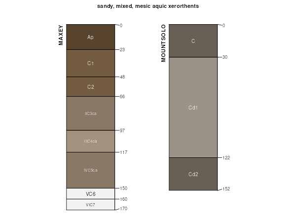 Siblings are those soil series that occur together in map units, in this case with the MOUNTSOLO series. Sketches are arranged according to their subgroup-level taxonomic structure. Source: SSURGO snapshot , parsed OSD records and snapshot of SC database .