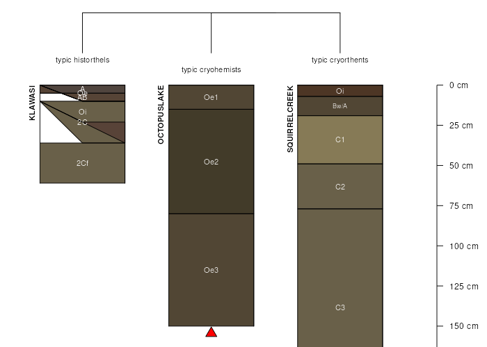 Siblings are those soil series that occur together in map units, in this case with the OCTOPUSLAKE series. Sketches are arranged according to their subgroup-level taxonomic structure. Source: SSURGO snapshot , parsed OSD records and snapshot of SC database .