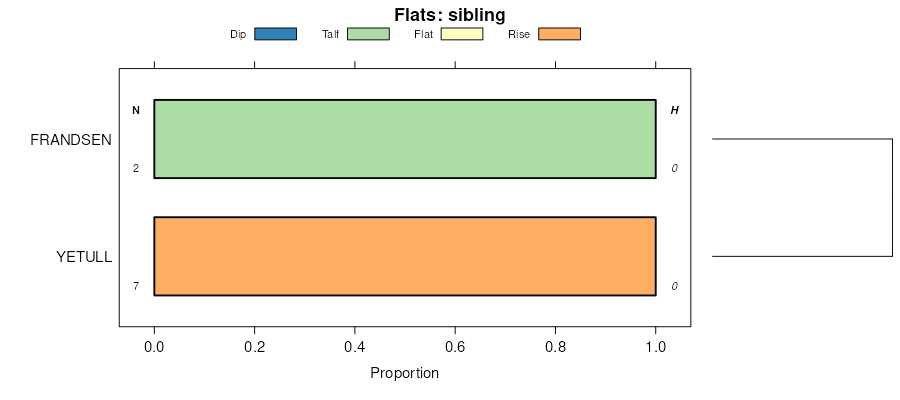 Geomorphic description summaries for the REDSAGE series and siblings. Series are sorted according to hierarchical clustering of proportions and relative hydrologic position within an idealized landform (e.g. top to bottom). Most soil series (SSURGO components) are associated with a hillslope position and one or more landform-specific positions: hills, mountain slopes, terraces, and/or flats. Proportions can be interpreted as an aggregate representation of geomorphic membership. The values printed to the left (number of component records) and right (Shannon entropy) of stacked bars can be used to judge the reliability of trends. Small Shannon entropy values suggest relatively consistent geomorphic association, while larger values suggest lack thereof. Source: SSURGO component records .