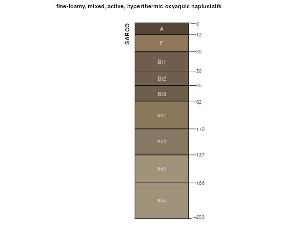 Siblings are those soil series that occur together in map units, in this case with the SARCO series. Sketches are arranged according to their subgroup-level taxonomic structure. Source: SSURGO snapshot , parsed OSD records and snapshot of SC database .