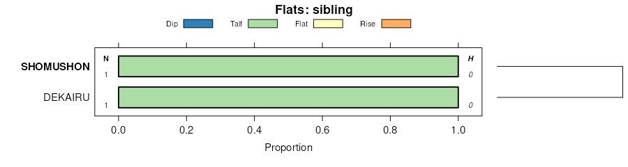 Geomorphic description summaries for the SHOMUSHON series and competing. Series are sorted according to hierarchical clustering of proportions and relative hydrologic position within an idealized landform (e.g. top to bottom). Proportions can be interpreted as an aggregate representation of geomorphic membership. Most soil series (SSURGO components) are associated with a hillslope position and one or more landform-specific positions: hills, mountain slopes, terraces, and/or flats. The values printed to the left (number of component records) and right (Shannon entropy) of stacked bars can be used to judge the reliability of trends. Shannon entropy values close to 0 represent soil series with relatively consistent geomorphic association, while values close to 1 suggest lack thereof. Source: SSURGO component records .