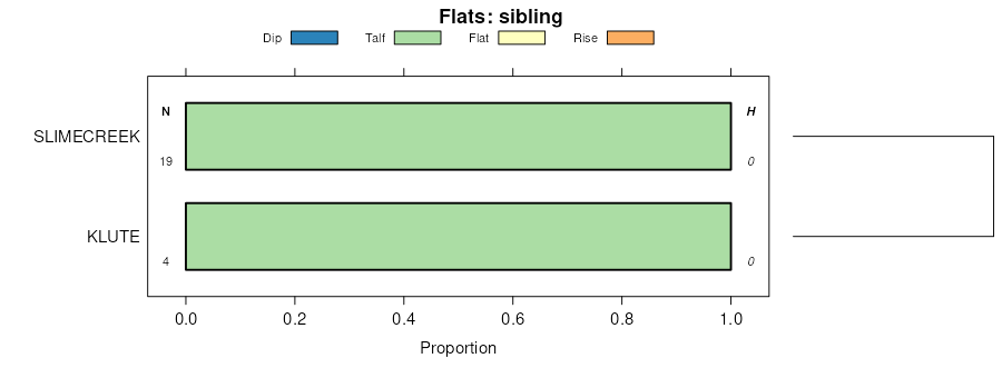 Geomorphic description summaries for the SONDERNA series and siblings. Series are sorted according to hierarchical clustering of proportions and relative hydrologic position within an idealized landform (e.g. top to bottom). Most soil series (SSURGO components) are associated with a hillslope position and one or more landform-specific positions: hills, mountain slopes, terraces, and/or flats. Proportions can be interpreted as an aggregate representation of geomorphic membership. The values printed to the left (number of component records) and right (Shannon entropy) of stacked bars can be used to judge the reliability of trends. Small Shannon entropy values suggest relatively consistent geomorphic association, while larger values suggest lack thereof. Source: SSURGO component records .