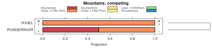 Geomorphic description summaries for the TWINBRIDGE series and competing. Series are sorted according to hierarchical clustering of proportions and relative hydrologic position within an idealized landform (e.g. top to bottom). Proportions can be interpreted as an aggregate representation of geomorphic membership. Most soil series (SSURGO components) are associated with a hillslope position and one or more landform-specific positions: hills, mountain slopes, terraces, and/or flats. The values printed to the left (number of component records) and right (Shannon entropy) of stacked bars can be used to judge the reliability of trends. Shannon entropy values close to 0 represent soil series with relatively consistent geomorphic association, while values close to 1 suggest lack thereof. Source: SSURGO component records .