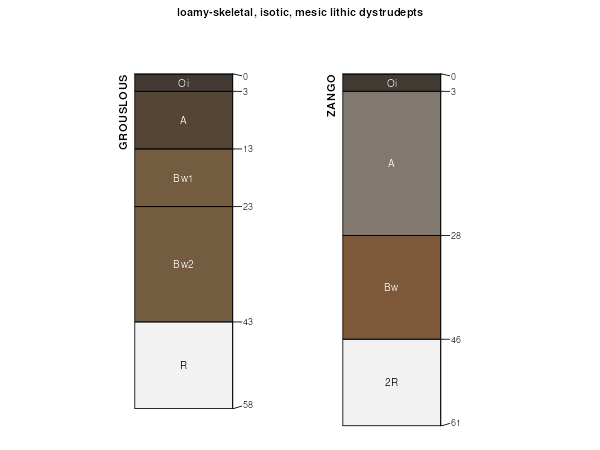 Siblings are those soil series that occur together in map units, in this case with the ZANGO series. Sketches are arranged according to their subgroup-level taxonomic structure. Source: SSURGO snapshot , parsed OSD records and snapshot of SC database .